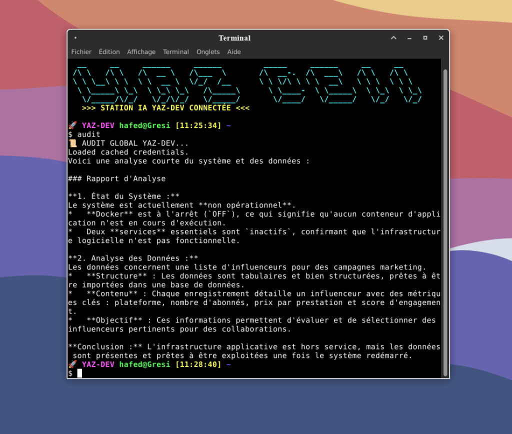 « L’Agence Yaz Dev Ltd combine expertise humaine et puissance de l’IA pour sécuriser et scaler vos actifs numériques. Basés sur une infrastructure Debian 13, nous garantissons des solutions robustes, de l’audit de sécurité au déploiement ERP. »